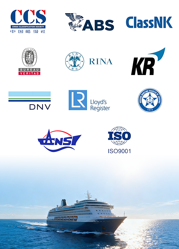產品先后取得CCS產品型式認證、BV工廠檢驗型式認證以及中國、美國、英國、法國、德國、意大利、挪威、日本、俄羅斯、韓國船級社產品檢驗認可證書。累計申請和獲得國家發明專利2項,實用新型專利30項。2014年獲國家標委會采用國際標準I類證書;2021年獲江蘇省工業企業質量信用A級企業;2024年獲中國機械工業聯合會全國機械工業產品質量創新大賽優秀獎。公司在供應鏈中幫助下游船廠和終端用戶降低采購成本,縮短供貨周期,提升了整個產業鏈的價值和競爭力。